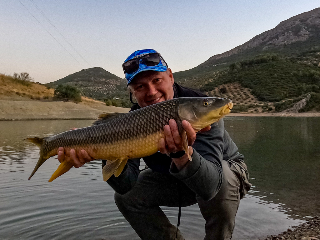 Doch eines war passiert, immer wieder sah ich die großen iberische Barben und so ein wollte ich unbedingt an den Haken bekommen und auch landen. Was extrem spannend war, die Barben hielten sich fast immer in der Nähe von großen Futterfischschwärmen auf, und am Abend ging es dann richtig los, weil die Barben fressen bzw. rauben hier wie Raubfische! Diese coolen Fische werden auch beim Grundfischen sehr oft gefangen, quasi als Beifang beim Karpfenfischen!